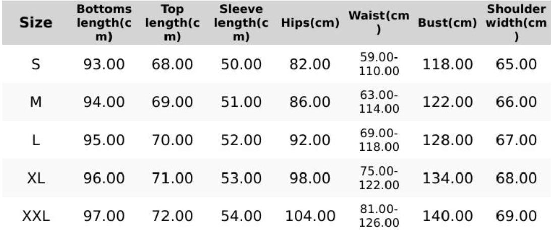 Sizing Chart