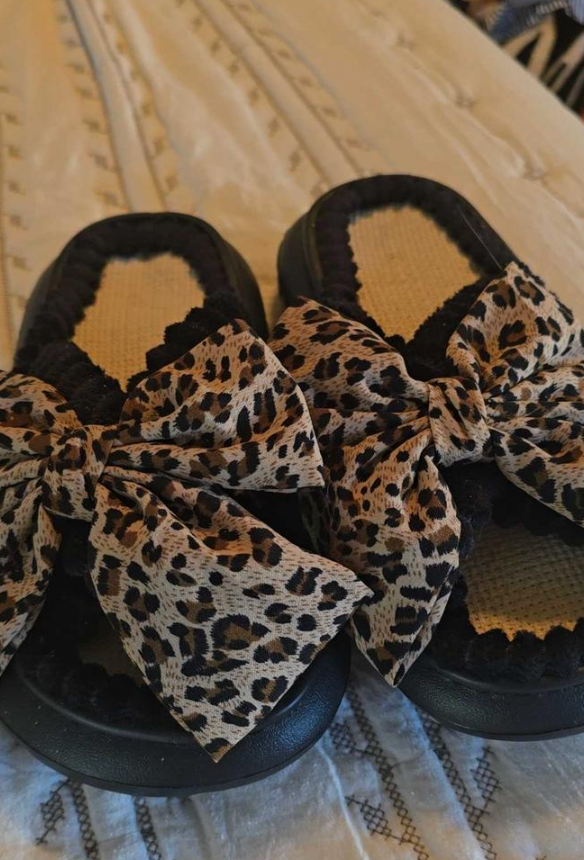 “I wear these every morning — they’re unbelievably soft and the leopard bow makes them look way more expensive than they are. My husband even said they’re ‘too cute to just wear inside’ 😂.”