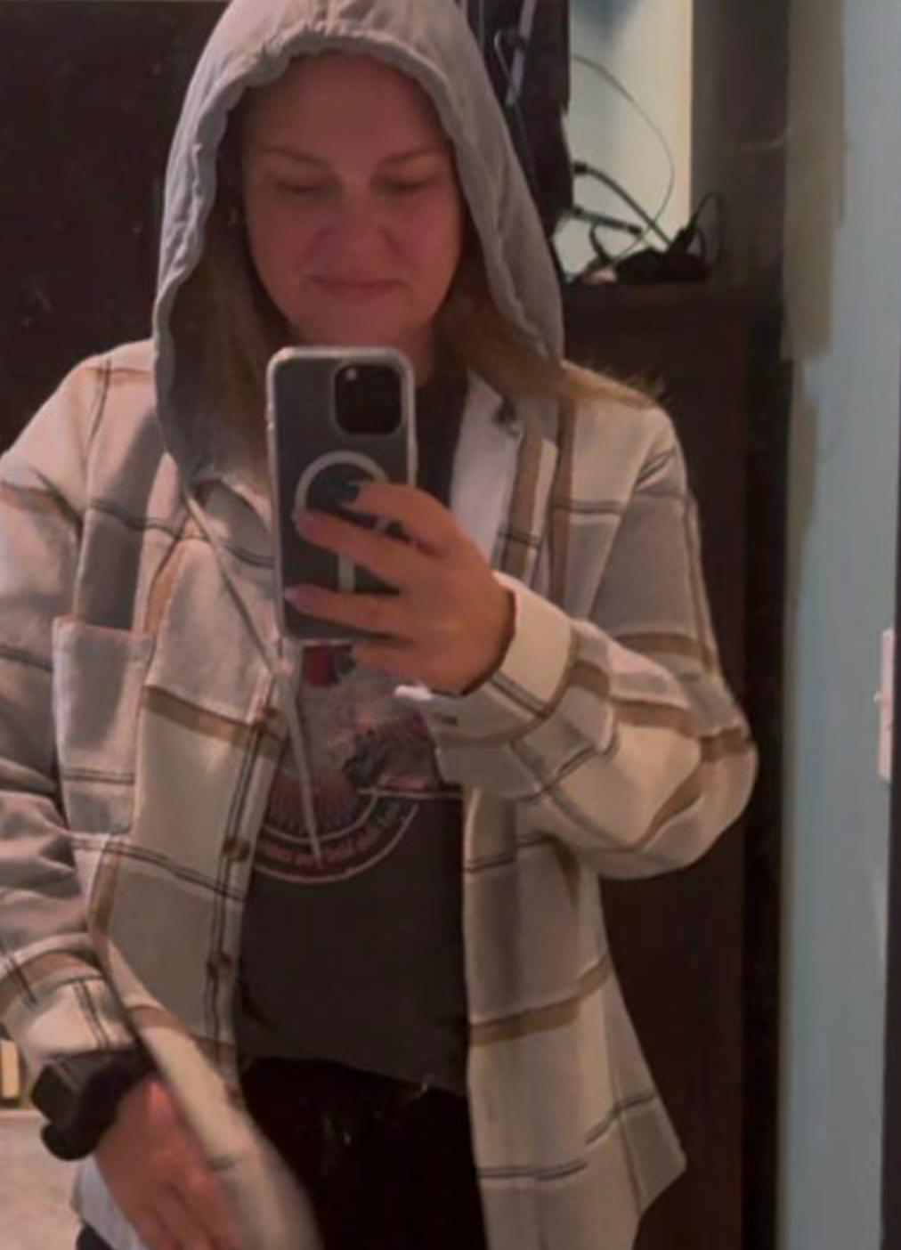 “Wore this all weekend and got so many compliments 🥰 I love that it’s warm enough for chilly mornings but not bulky. The hoodie makes it even better!”