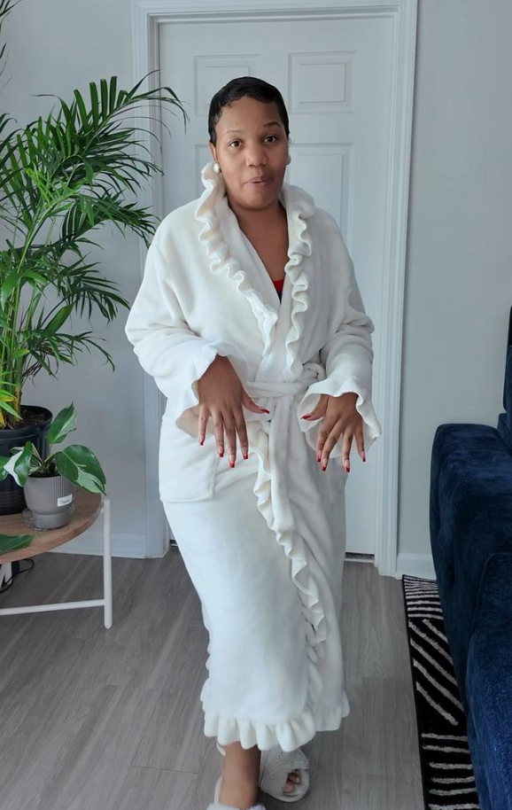 The Ruffle Luxe Robe combines plush comfort with elegant ruffled edges — turning your quiet mornings and cozy nights into a soft-glam ritual.